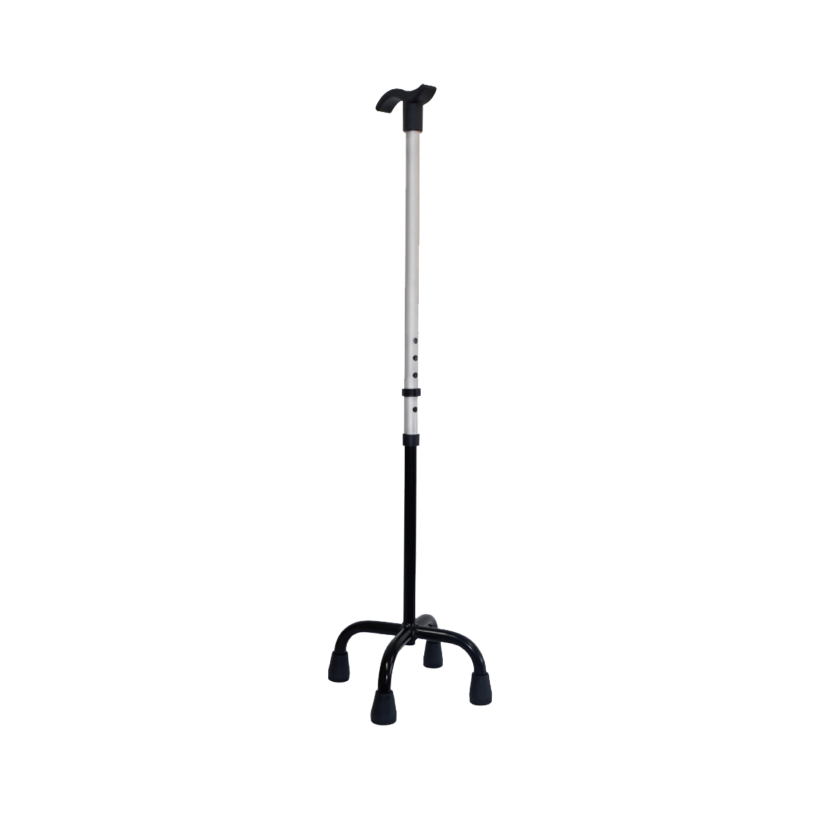 O Bastão de 4 Apoios possui estrutura leve, resistente e regulagem para diferentes níveis de altura através de uma trava de fácil ajuste e alta segurança. Proporciona equilíbrio e apoio durante a marcha. A ponteira em borracha antiderrapante e os apoios de mãos que garantem a segurança e conforto na utilização.