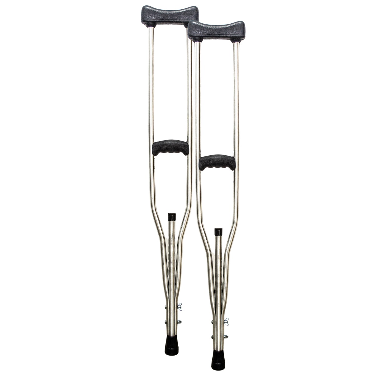 As Muletas Axilares possuem estrutura leve, resistente e regulagem para diferentes níveis de altura através de travas de fácil ajuste e alta segurança. Proporcionam equilíbrio, apoio e sustentação quando é necessário preservar o membro inferior. A ponteira em borracha antiderrapante e o apoio de mão garantem segurança e conforto na utilização.