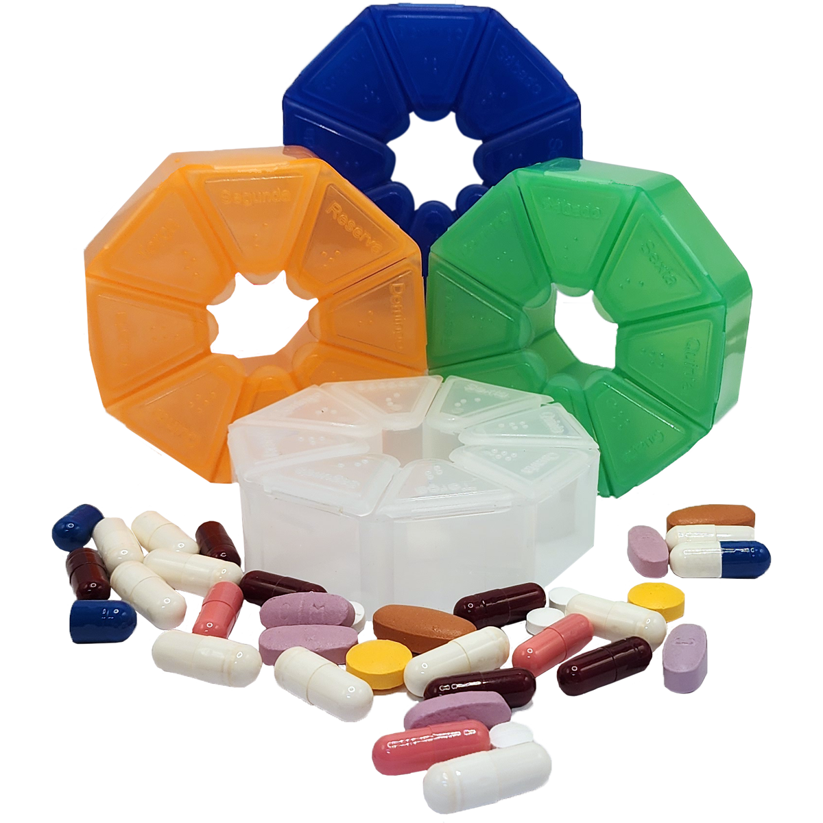 O Porta Comprimidos &FÁCIL é a solução prática e versátil para organizar suas vitaminas e medicamentos. Com capacidade para armazenar comprimidos para toda a semana, incluindo um compartimento reserva, ele é ideal para o dia a dia de pessoas e animais em tratamento. Seu formato sextavado torna-o fácil de transportar e utilizar.